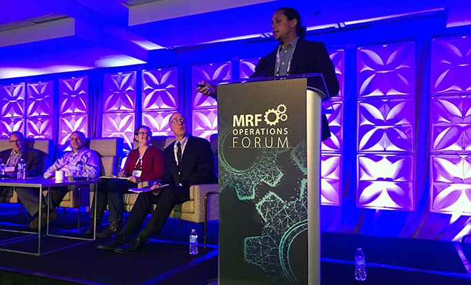 MRF operators shared the results of their recent facility upgrades during the 2019 MRF Operations Forum, which was organized by Recycling Today Events in partnership with RRT Design & Construction, Melville, New York. The forum took place Oct. 22 in Chicago at the Chicago Marriott Downtown Magnificent Mile. Nat Egosi, president and CEO of RRT, moderated the session, which included Joaquin Mariel of Balcones Resources Inc., Austin, Texas; Miriam Holsinger of Eureka Recycling, Minneapolis; Tom Riek of Pioneer Industries International, Itasca, Illinois; and John Pausma of Homewood Disposal Service, Homewood, Illinois.